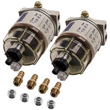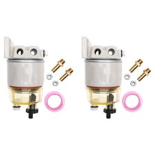 2x Water Separator Fuel Filter R12T + Fuel Fittings for Boats Trucks Van NEW